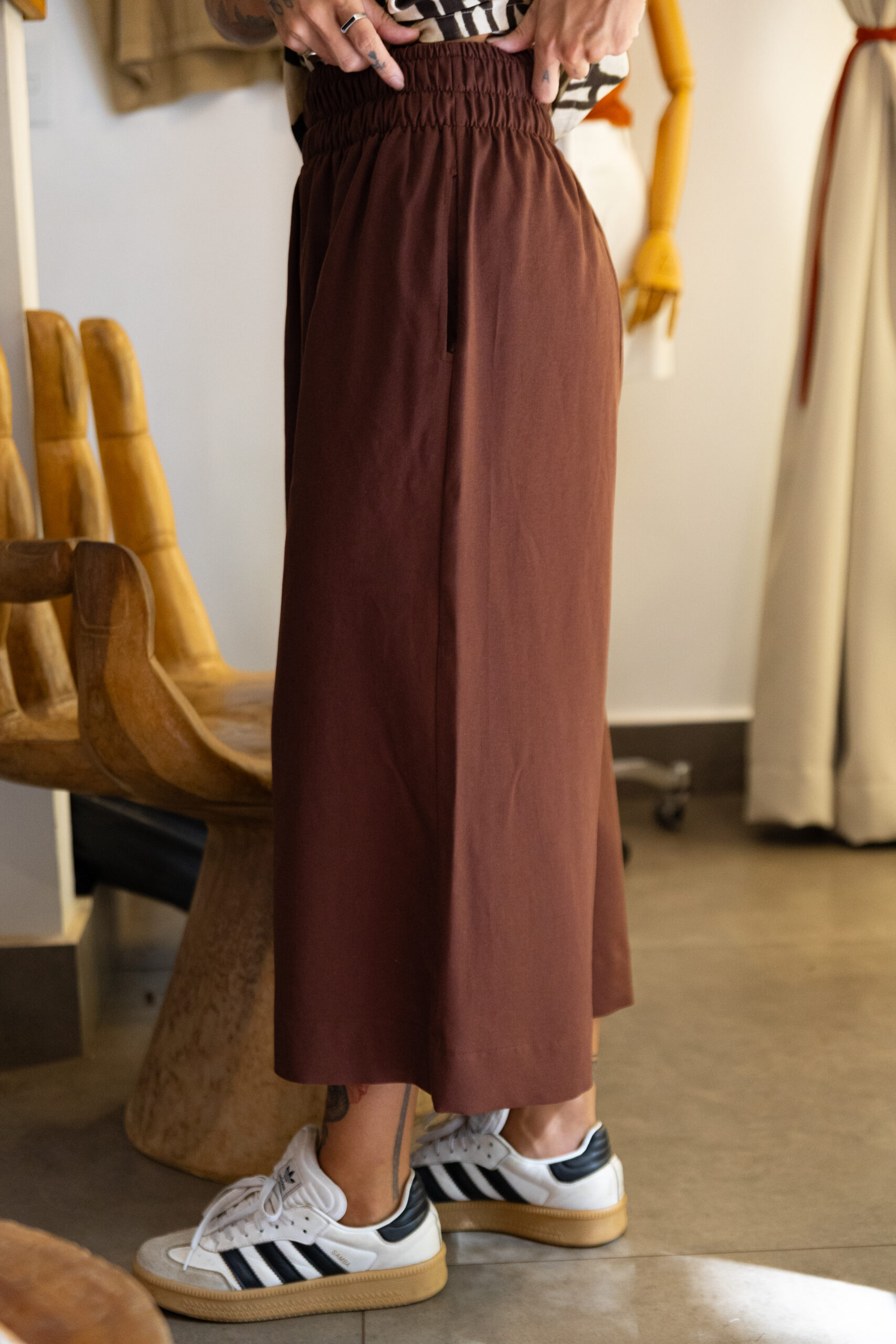 Calça Pantacourt Marrom