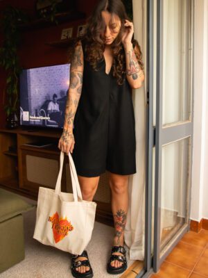 Peça ampla, cavada nas laterais e com alça totalmente regulável! Por isso se adapta bem ao busto e você consegue ajustar a altura como quiser. Clique no tamanho para conferir as medidas de quadril.