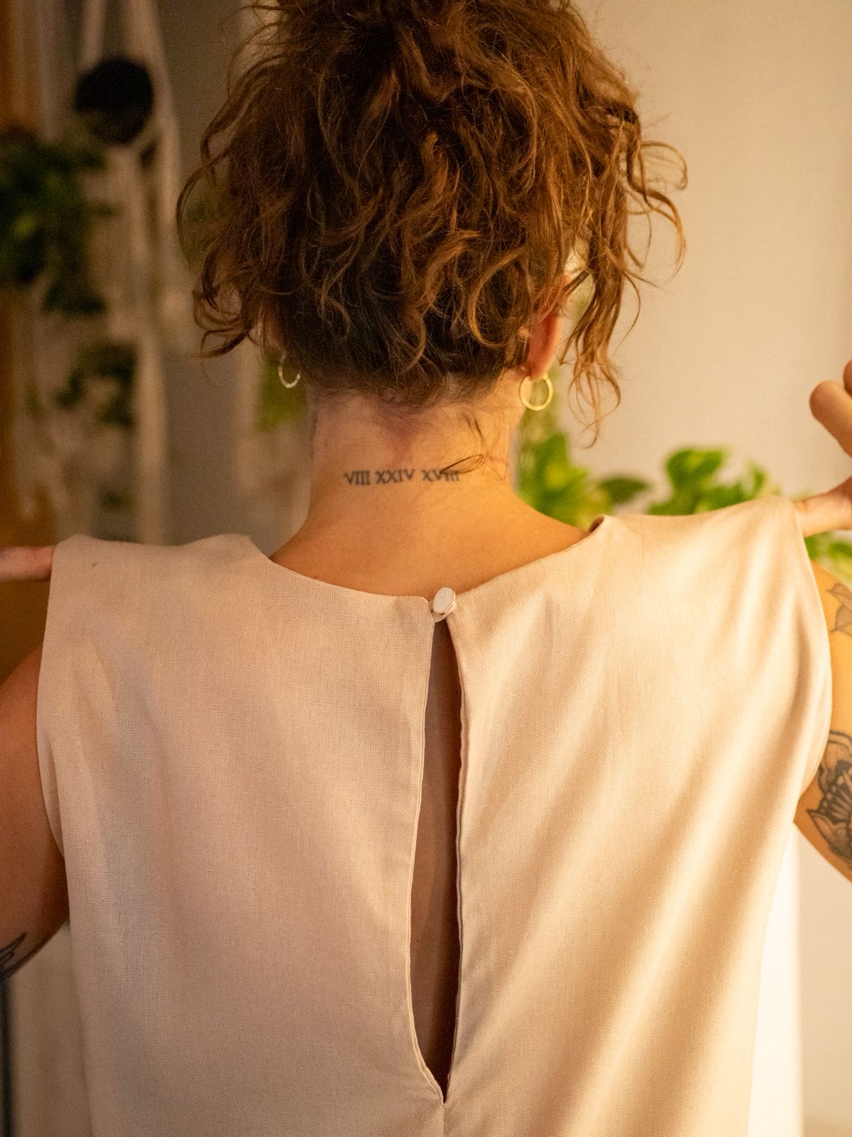 Tecido 70% viscose e 30% linho.