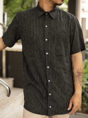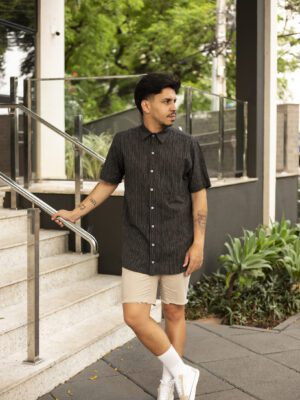 Camisa Linho Listrado Cru e Preto